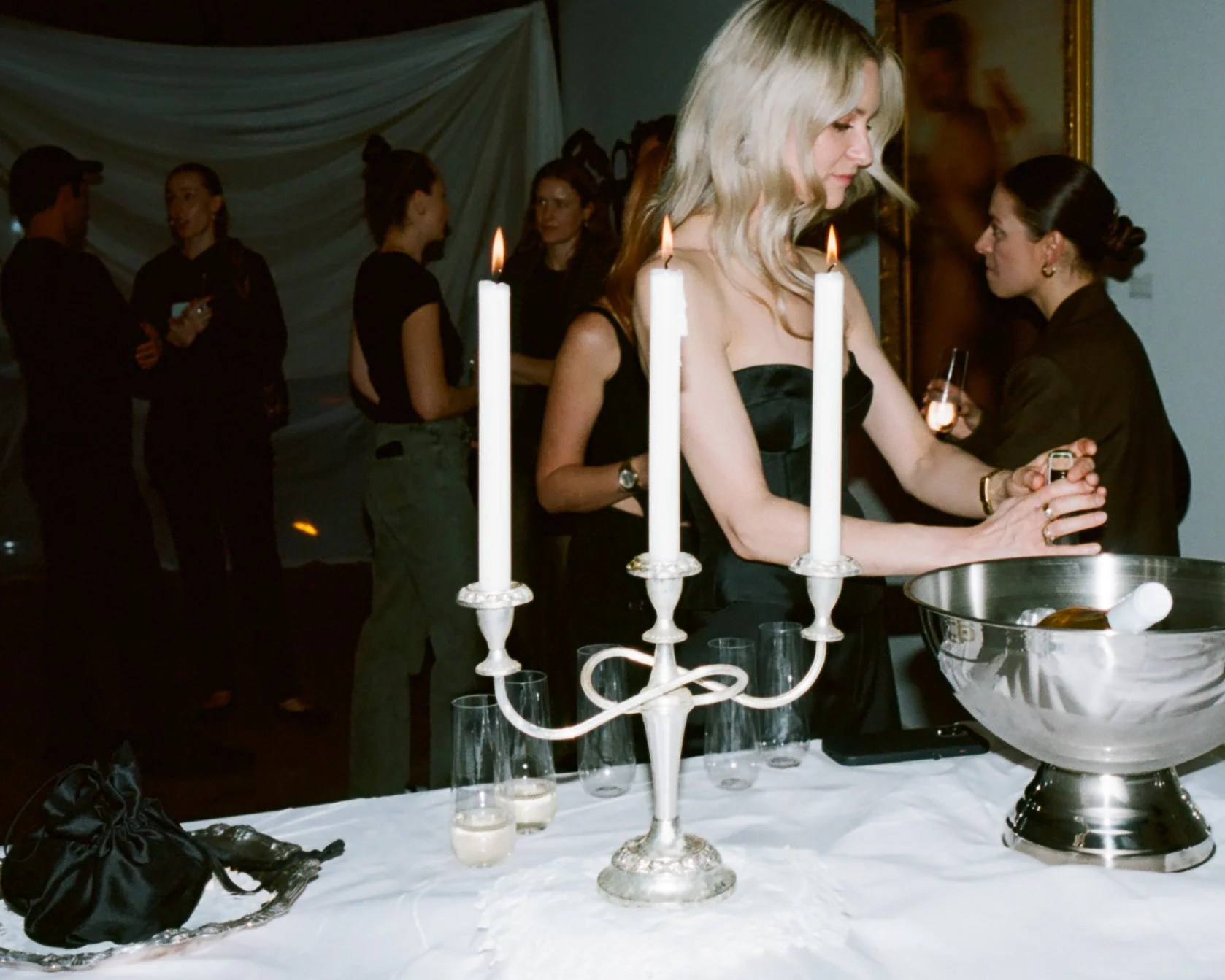 The atmosphere felt fun, romantic, and intimate - effortlessly vibey, and unmistakably New York. Friends, collaborators, and new faces moved slowly through the space, drinks in hand, pausing to take in each piece up close. Conversations hummed softly while the film played in the background, casting shifting black-and-white light across the gallery. It was relaxed and cinematic, the kind of evening that felt both spontaneous and quietly special.